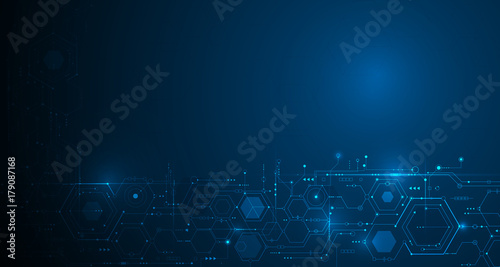 Wall mural vector illustration circuit board and hexagons background. hi-tech digital technology and engineerin