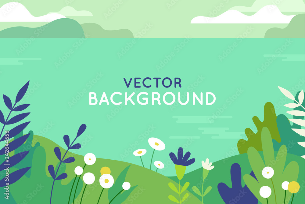 The watermark will not be included on Wall mural.: Vector illustration in trendy flat simple style - spring and summer background with copy space for t