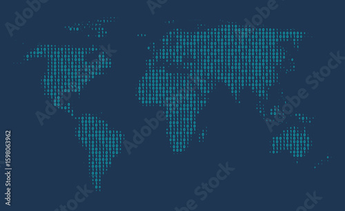 Wall mural vector illustration of a world map made of binary numbers. global data, digital communication, and i