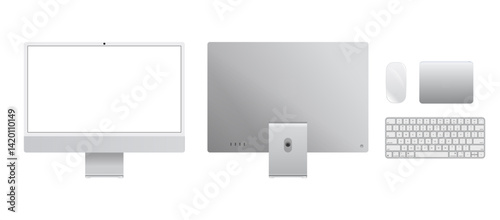 The watermark will not be included on Wall mural.: Vector illustration of computer devices including desktop pc, keyboard, and mouse - ideal for tech pr
