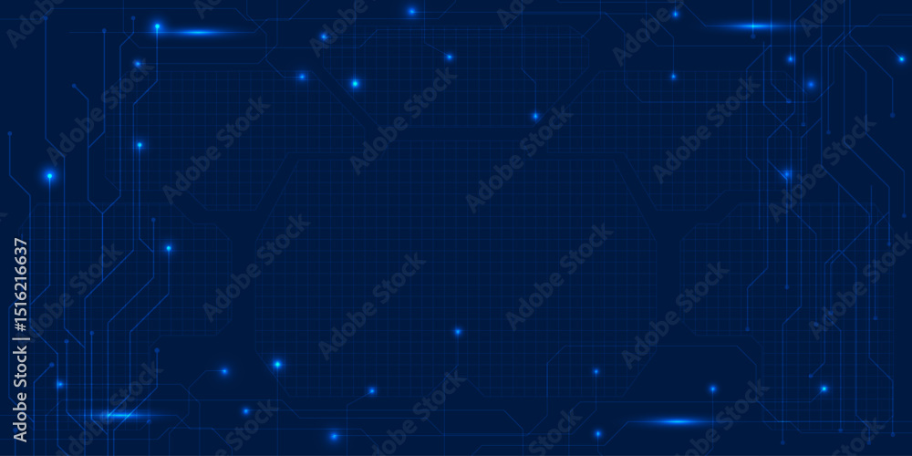 Vector illustration of digital circuit network technology perspective background - design for game graWall mural