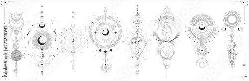 The watermark will not be included on Wall mural.: Vector illustration set of moon phases - different stages of moonlight activity in vintage engraving