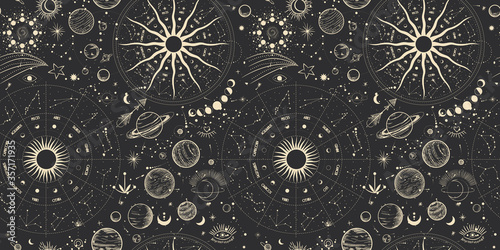 Wall mural vector illustration set of moon phases. different stages of moonlight activity in vintage engraving  - Wall murals Wall mural vector illustration set of moon phases. different stages of moonlight activity in vintage engraving - Wall murals