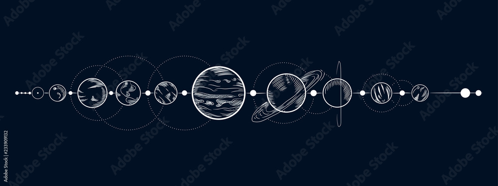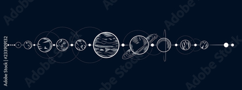 Wall mural vector illustration set of moon phases. different stages of moonlight activity in vintage engraving  - Wall murals Wall mural vector illustration set of moon phases. different stages of moonlight activity in vintage engraving - Wall murals