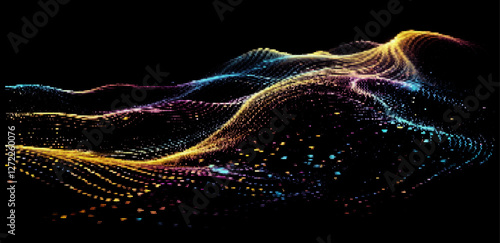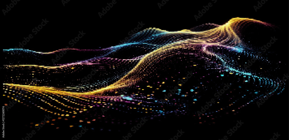 Wall mural vector illustration showcases flowing, multicolored waves of particles against a black background, c