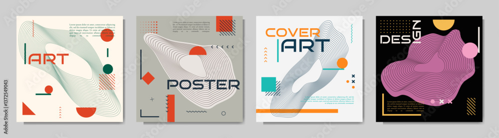 Vector illustration - linear pattern with memphis geometric elements - design elements for social mediWall mural