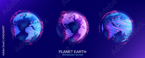 The watermark will not be included on Wall mural.: Vector illustration - set of isolated objects - planet earth - global map - future - modern technological
