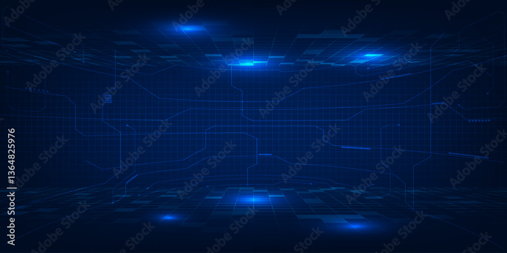 Wall mural : Vector illustrations of abstract blue digital hi tech technology background with digital element cir