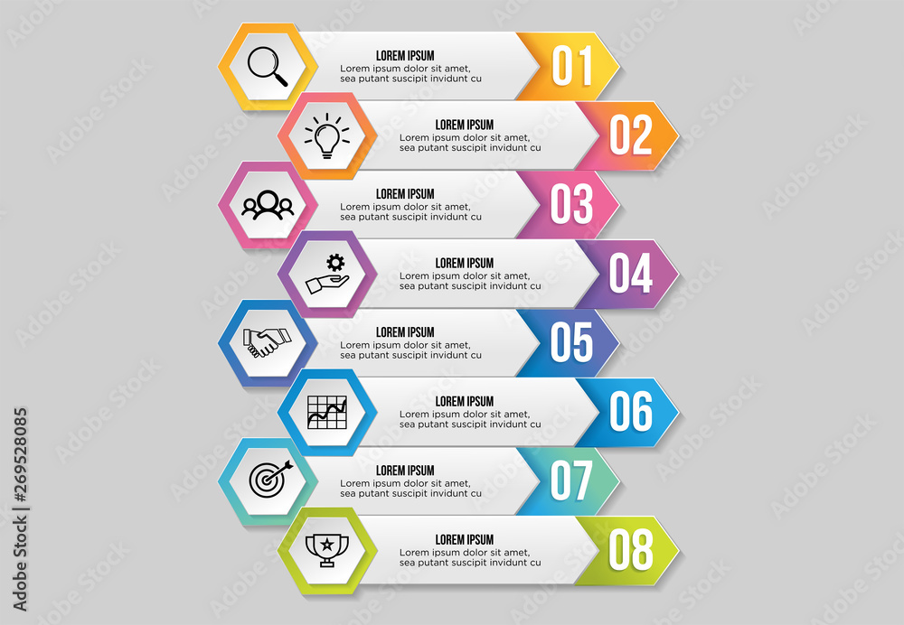 The watermark will not be included on Wall mural.: Vector infographic design template with options steps and marketing icons can be used for info graph