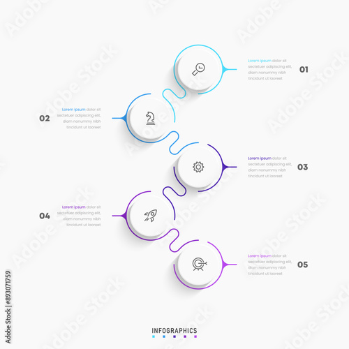 The watermark will not be included on Wall mural.: Vector infographic label design template with icons and 5 options or steps - can be used for process