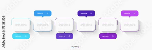 Wall mural : Vector infographic label design template with icons and 6 options or steps - can be used for process