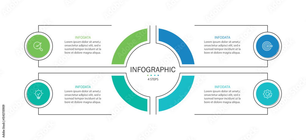 Wall mural vector infographic label design with circle infographic template design and 4 options or steps. - Wall murals Wall mural vector infographic label design with circle infographic template design and 4 options or steps. - Wall murals