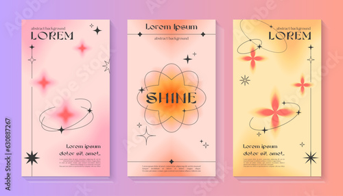 The watermark will not be included on Wall mural.: Vector insta story gradient templates with geometric shapes,blurred sparkles,copy space for text in