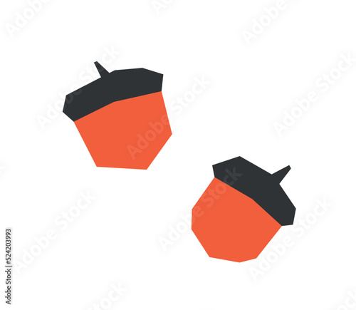The watermark will not be included on Wall mural.: Vector isolated illustration with two botanical elements - flat nuts - orange symbol of autumn - haze