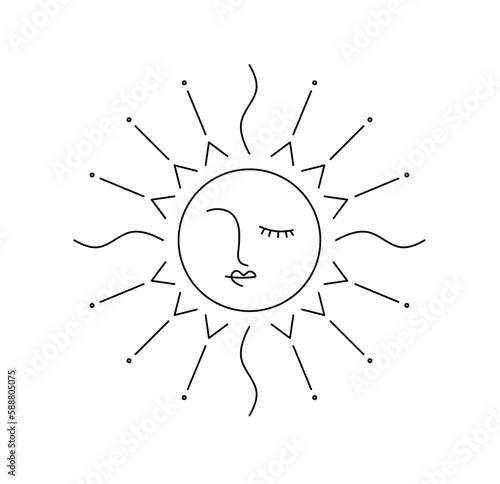 Wall mural vector isolated one single abstract fairy tale ornate sun with rays and closed eyes colorless black