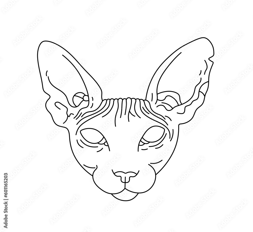 Wall mural : Vector isolated one single bold sphinx cat head face portrait front view colorless black and white c