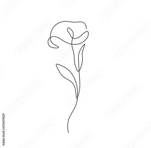Wall mural Vector isolated small simple minimal one single line calla flower colorless black and white contour line easy drawing