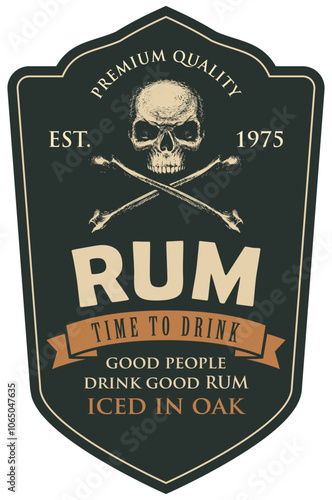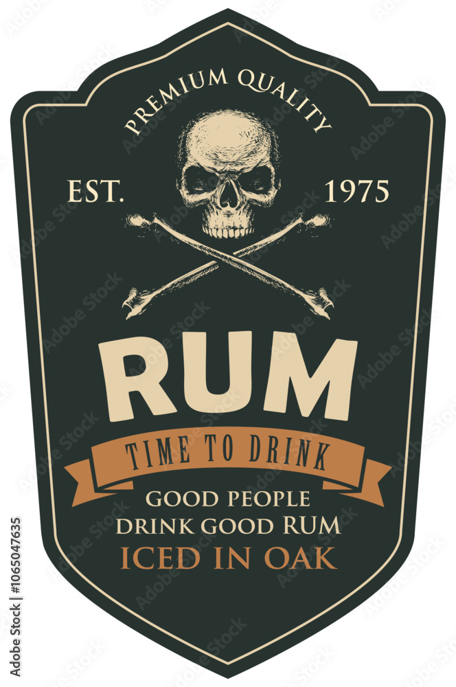 The watermark will not be included on Wall mural.: Vector labels for rum in figured frames with human skulls and crossbones in retro style - pirates str
