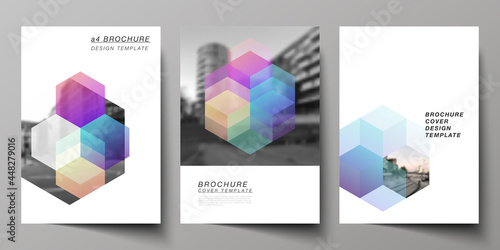 The watermark will not be included on Wall mural.: Vector layout of a4 format cover mockups design templates with colorful hexagons, geometric shapes,