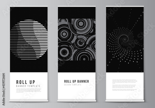Wall mural vector layout of roll up mockup templates for vertical flyers, flags design templates, banner stands