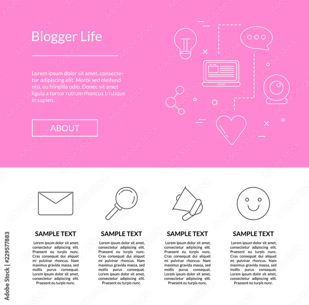 The watermark will not be included on Wall mural.: Vector line blog icons landing page template illustration with content in linear style