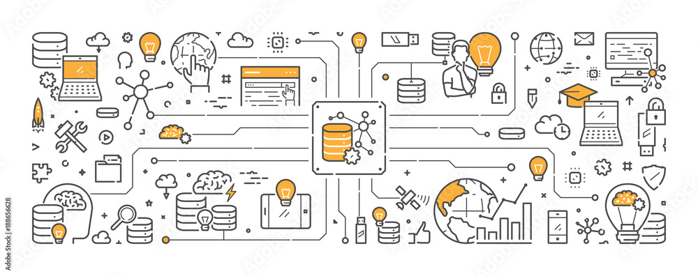 Wall mural : Vector line web banner for big data