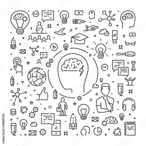 The watermark will not be included on Wall mural.: Vector line web banner for brainstorming