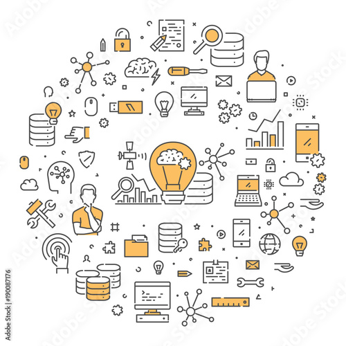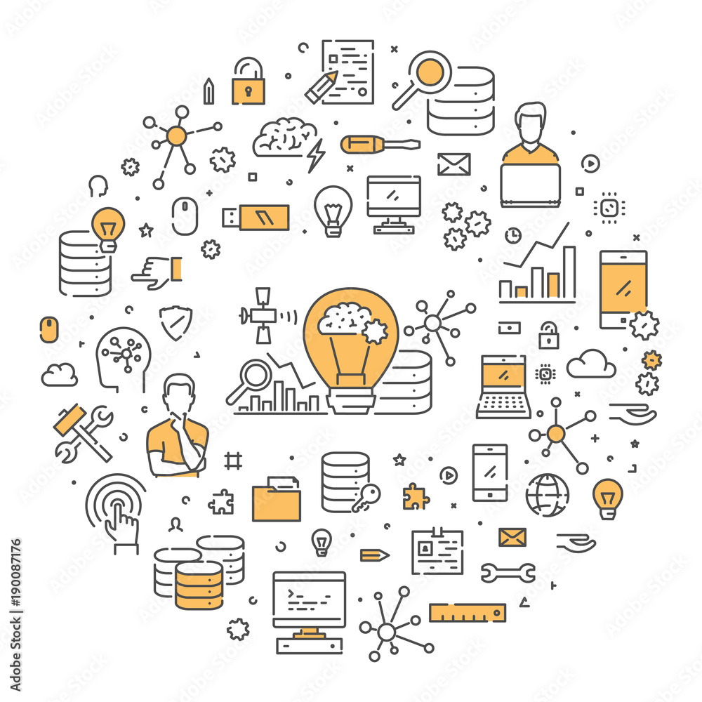 The watermark will not be included on Wall mural.: Vector line web banner for data science