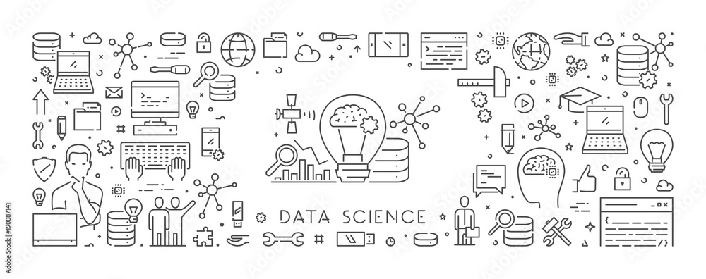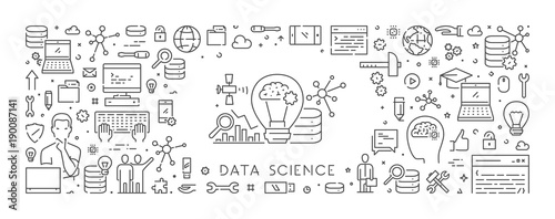 The watermark will not be included on Wall mural.: Vector line web banner for data science