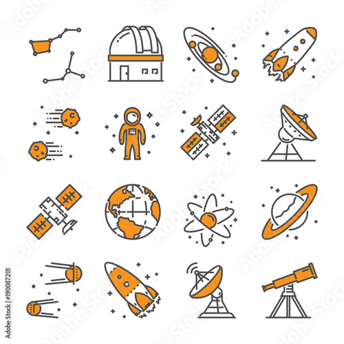 Wall mural vector linear icon set for astronomy
