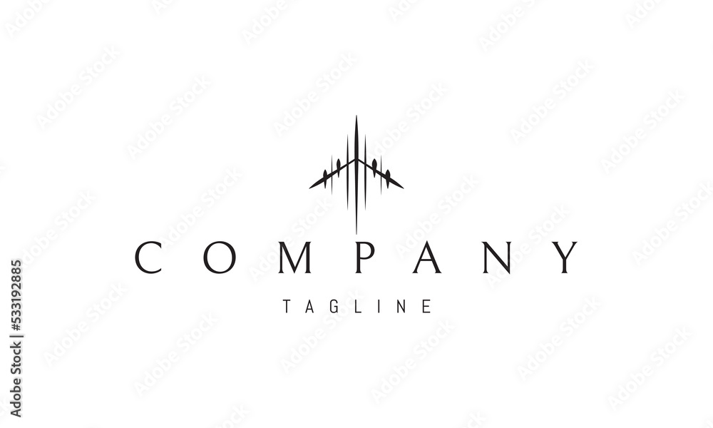Wall mural vector logo on which an abstract image of a passenger aircraft in a linear style.