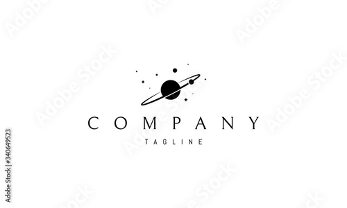 Vector logo on which an abstract image of a planet with an orbit in outer space - Wall mural