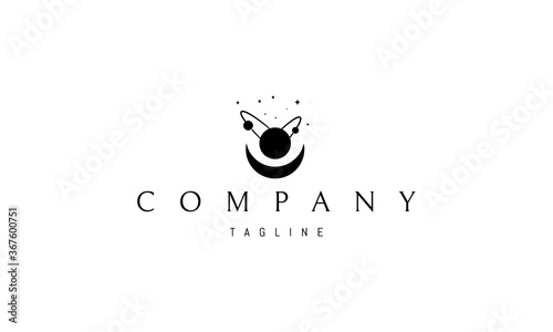Wall mural : Vector logo on which an abstract image of a planet with satellites at the bottom of which is an inve