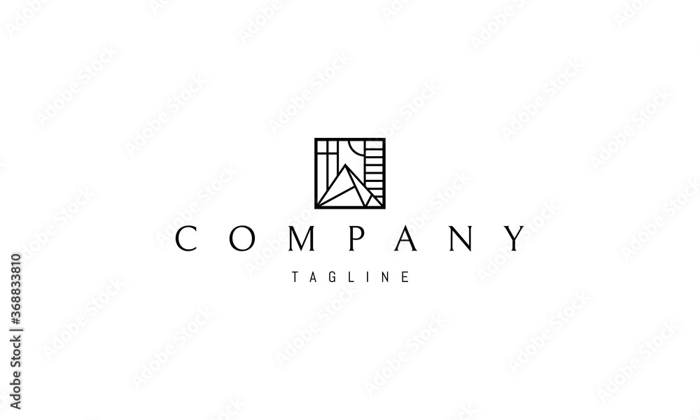 Wall mural vector logo on which an abstract image of a pyramid and straight lines in a square.