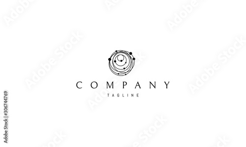 Wall mural vector logo on which an abstract image of orbits with planets.