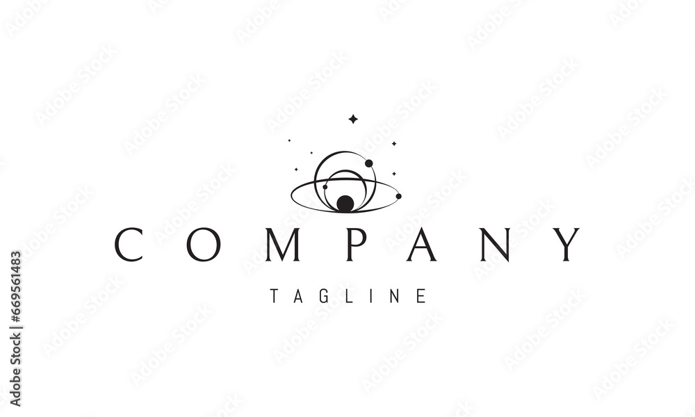 Wall mural vector logo with an abstract image of the solar system with orbits.