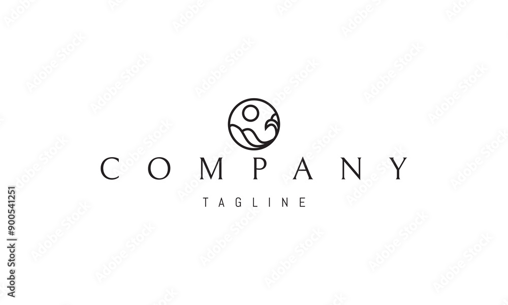 Wall mural vector logo with an abstract image of waves and sun in a circle. - Wall murals Wall mural vector logo with an abstract image of waves and sun in a circle. - Wall murals
