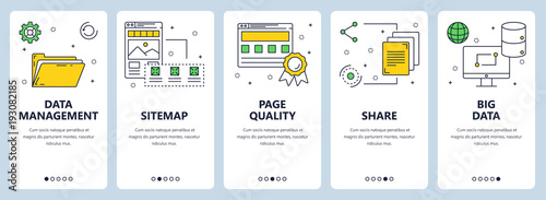 The watermark will not be included on Wall mural.: Vector modern thin line data management concept web banner set