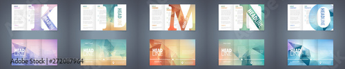Wall mural : Vector modern tri-fold brochure design template set with colorful polygonal background and letter de
