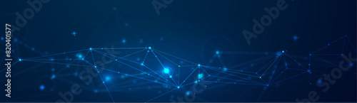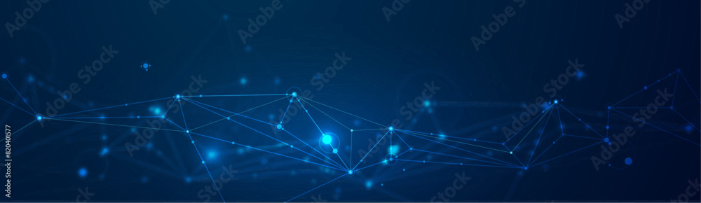 Wall mural vector molecule, network connected lines with dots, technology on blue background. abstract internet - Wall murals Wall mural vector molecule, network connected lines with dots, technology on blue background. abstract internet - Wall murals