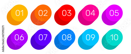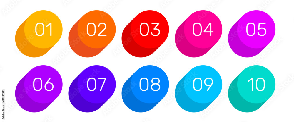 Wall mural : Vector number bullet point collection - 3d geometric shapes colorful labels set -