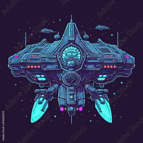 The watermark will not be included on Wall mural.: Vector of a futuristic spaceship hovering in space