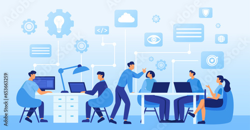 Wall mural : Vector of a team of people working on a new project in an open space office