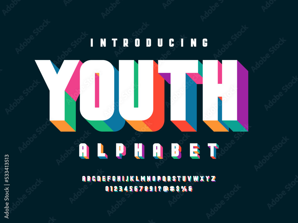 Vector of modern colorful alphabet design with uppercase, numbers and symbolsWall mural