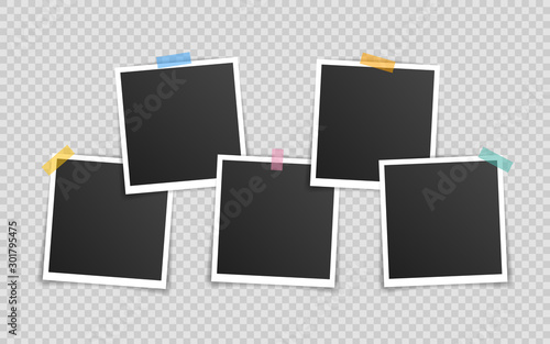 Wall mural : Vector photo frame mockup design - super set photo frame on sticky tape isolated on transparent backg