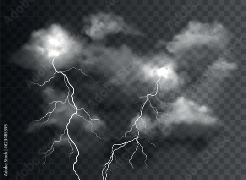 The watermark will not be included on Wall mural.: Vector realistic stormy clouds with lightning effects isolated on dark background