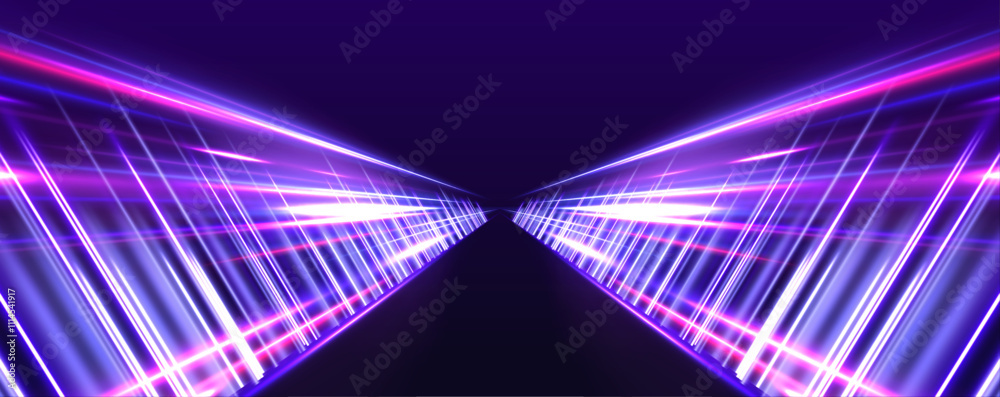 The watermark will not be included on Wall mural.: Vector representation of the speed of light in space with a dark background, featuring abstract neon