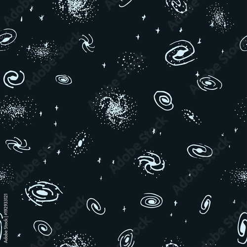 Wall mural : Vector seamless hand drawn galaxy background from spiral, elliptical, lenticular and irregular nebul