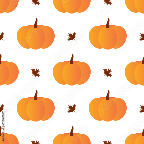Vector seamless pattern background with orange pumpkins and maple leaves for autumn, fall, harvest, Wall mural