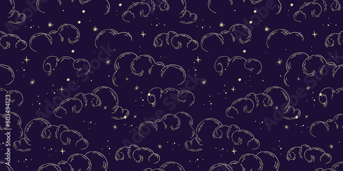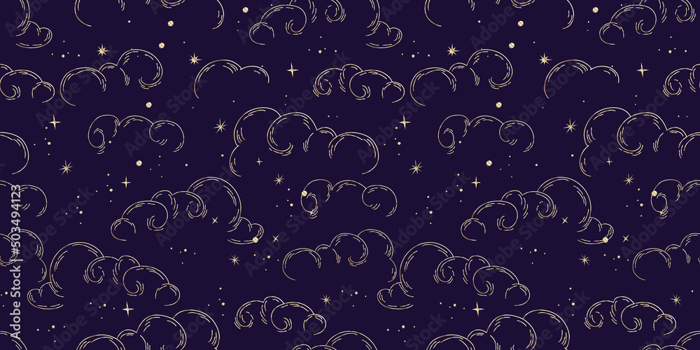 Wall mural : Vector seamless pattern with celestial mystic esoteric magic elements constellations and stars - alch
